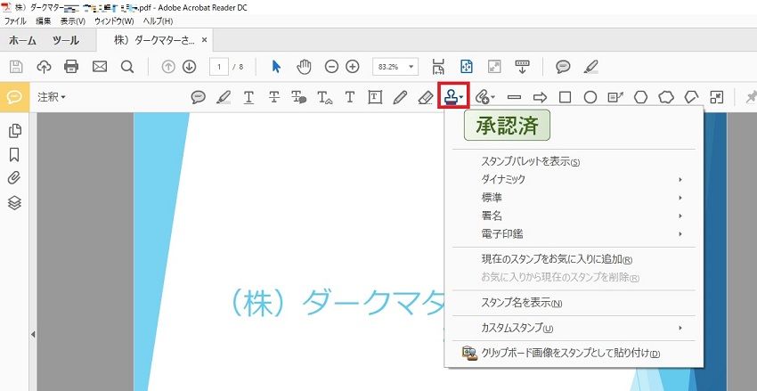 PDFの書類に押印する場合は、Adobe Acrobat Readerを使うのが手軽です。