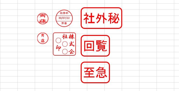 請求書等をエクセルで作る機会が多い人は、特に「Excel電子印鑑」は押印のやりやすさを考えると便利でしょう。認印、角印に加えて、「社外秘」「回覧」「至急」などビジネスシーンでよく使われるビジネス印も押せますよ。