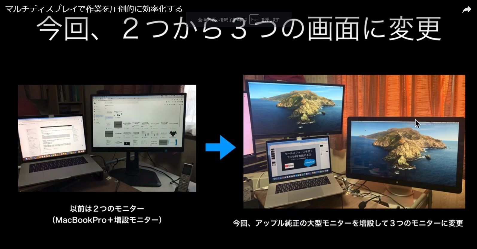 MacBook Proと増設モニターの2画面から3画面に増設する際にポイントになるのが、モニターの設置場所。置く場所によって作業効率が変わってきます。