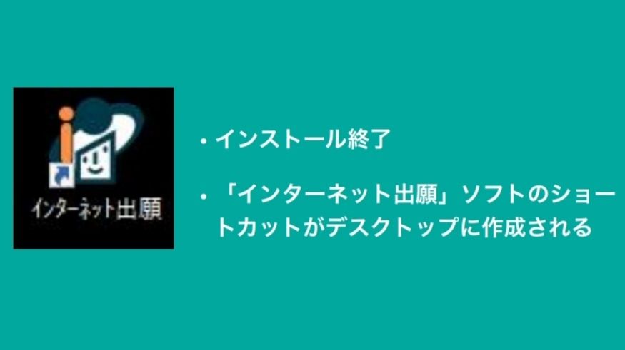 インストール終了し、「インターネット出願ソフト」のショートカットがデスクトップに作成された