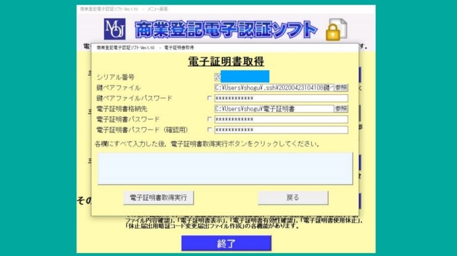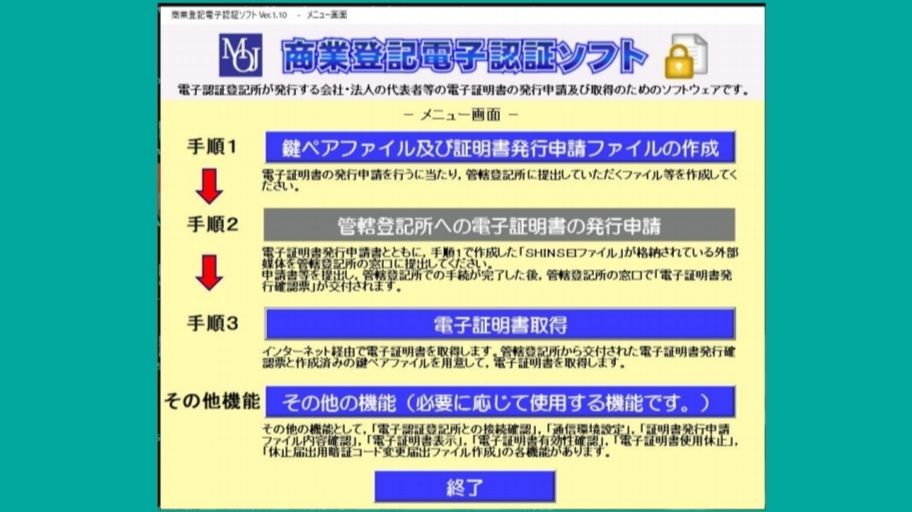 ※専用ソフトを利用するために法務省の電子証明書が必要