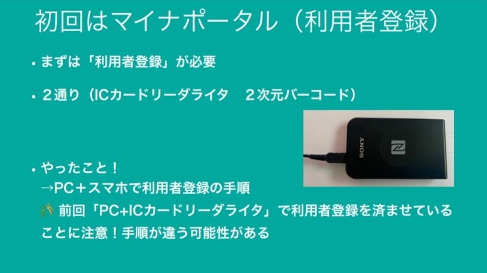 →つまりICカードリーダライタとスマホはマイナンバーカードを読取るために必要?(PCは基本的に必須?スマホのみでは?不明)