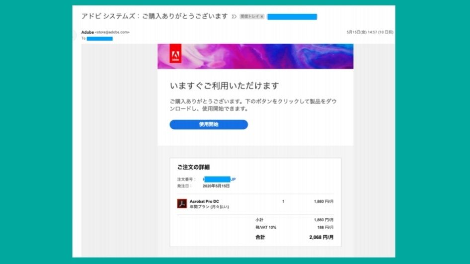 上記①で購入した後、電子メールが届く。「使用開始」をクリック
