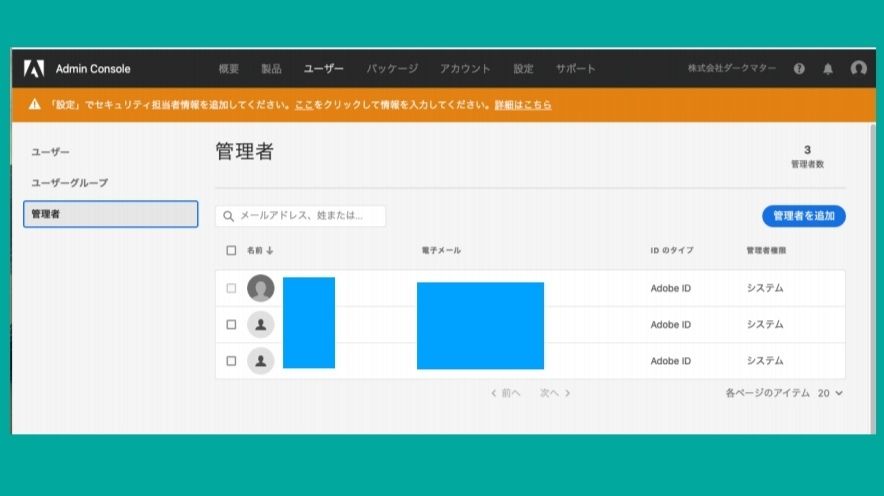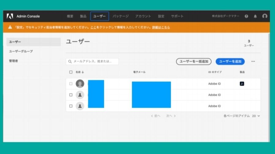 - ユーザー、ユーザーグループ、管理者を追加(必要に応じて)