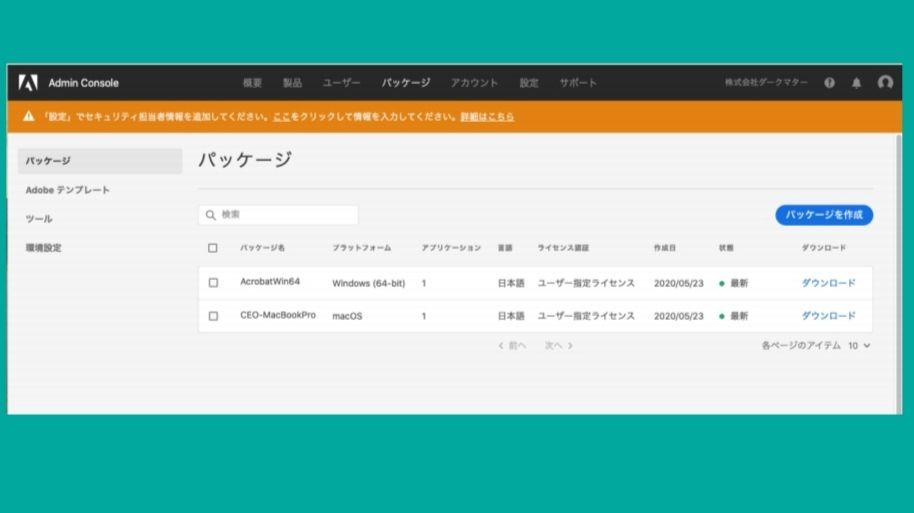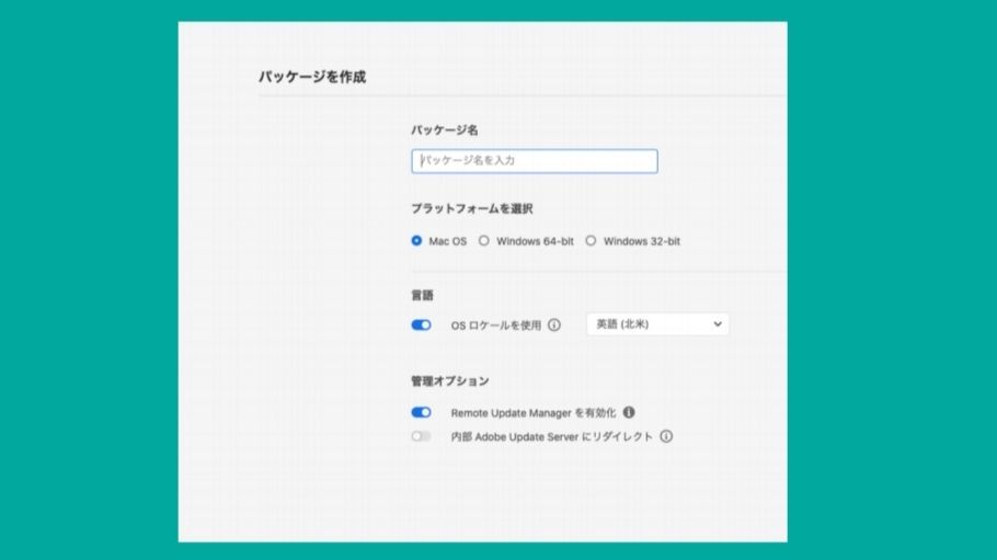 ※パッケージ作成は必須ではない。パッケージを作成するメリットは、作成パッケージを社内ファイルサーバに置いておくことでインストーラを毎回Adobeからダウンロードしなくて済む、Remote Update Manager機能で管理者が各クライアントのアップデートを実行できる、など?