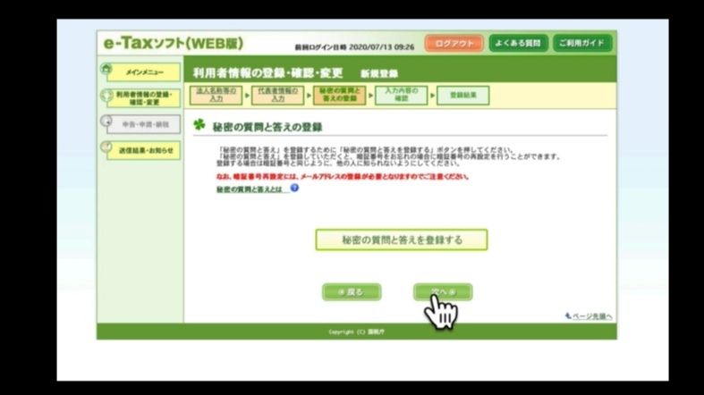 ※「秘密の質問と答えを登録する」は設定しなくても進める