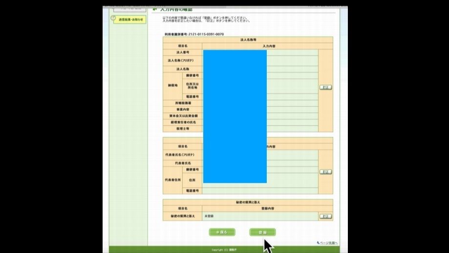 入力内容の確認画面になるので、確認し「登録」をクリック