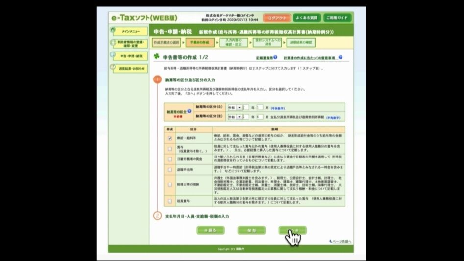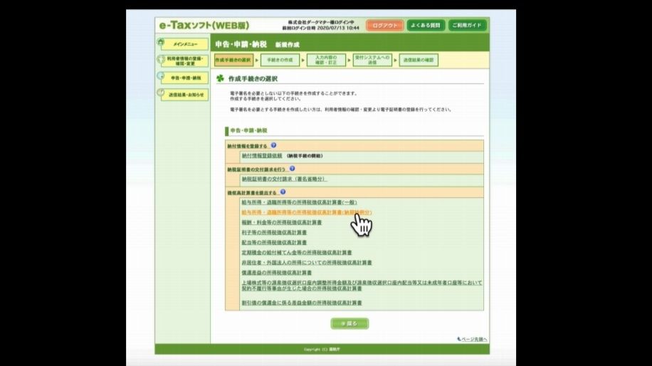 「絵与所得・退職所得等の所得税徴収高計算書(納期特例分)」をクリック