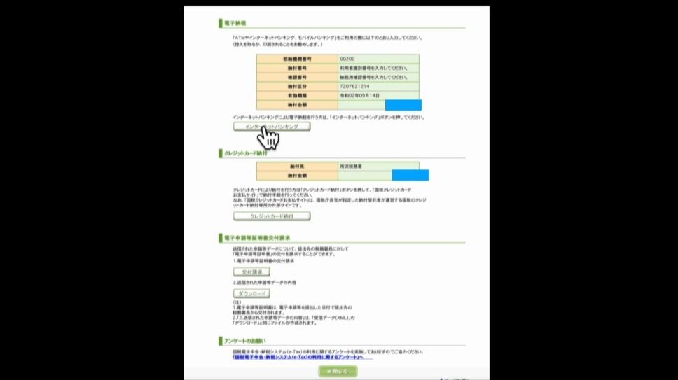 今回は電子納税なので、「インターネットバンキング」をクリック