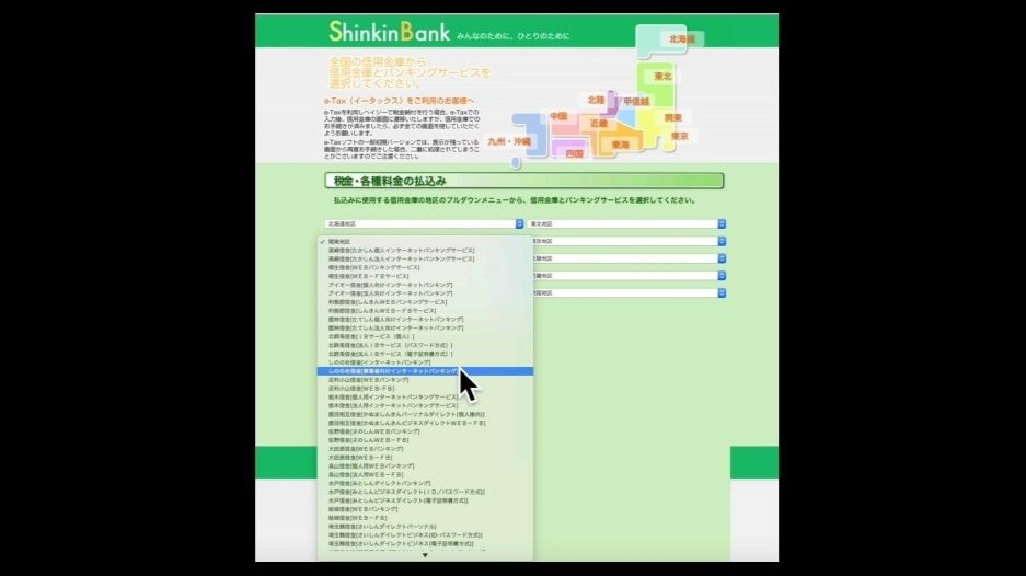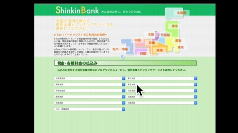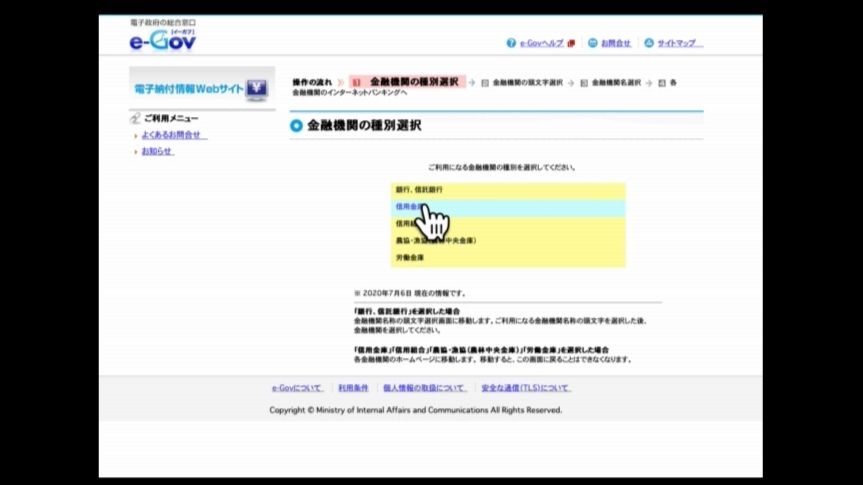 ここから納付へ。当社の場合は信用金庫なので「信用金庫」をクリック