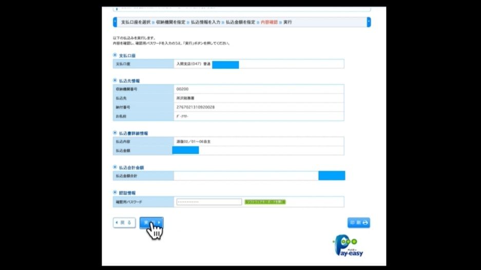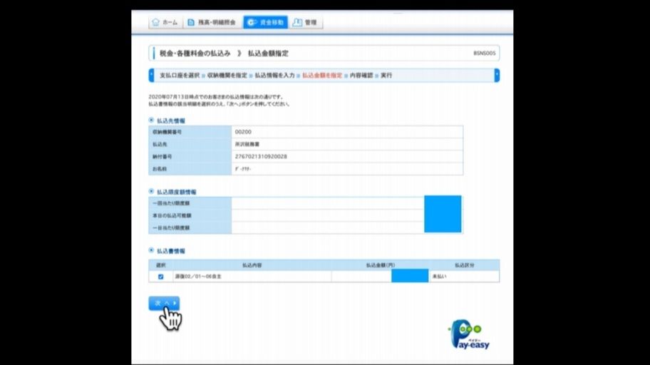 オンラインバンキングで支払い可能な金融機関は決められている(無い場合がある)
