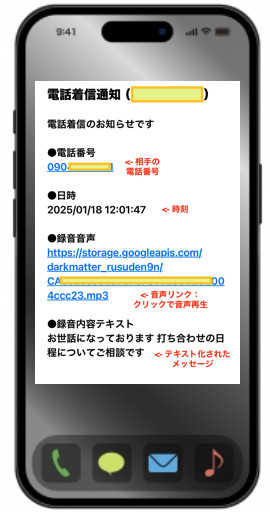 メール化されたデータは、自動的に記録として保存されます。これにより、過去の電話内容を検索したり、チームメンバーと共有したりするのが簡単になります。