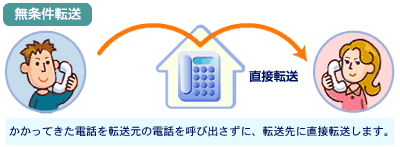 - 無条件転送とは、かかってきた電話を転送元の電話機を鳴らすことなく転送