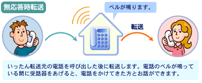 - 無応答転送とは、転送元の電話機が鳴っている間に電話をとることができる転送