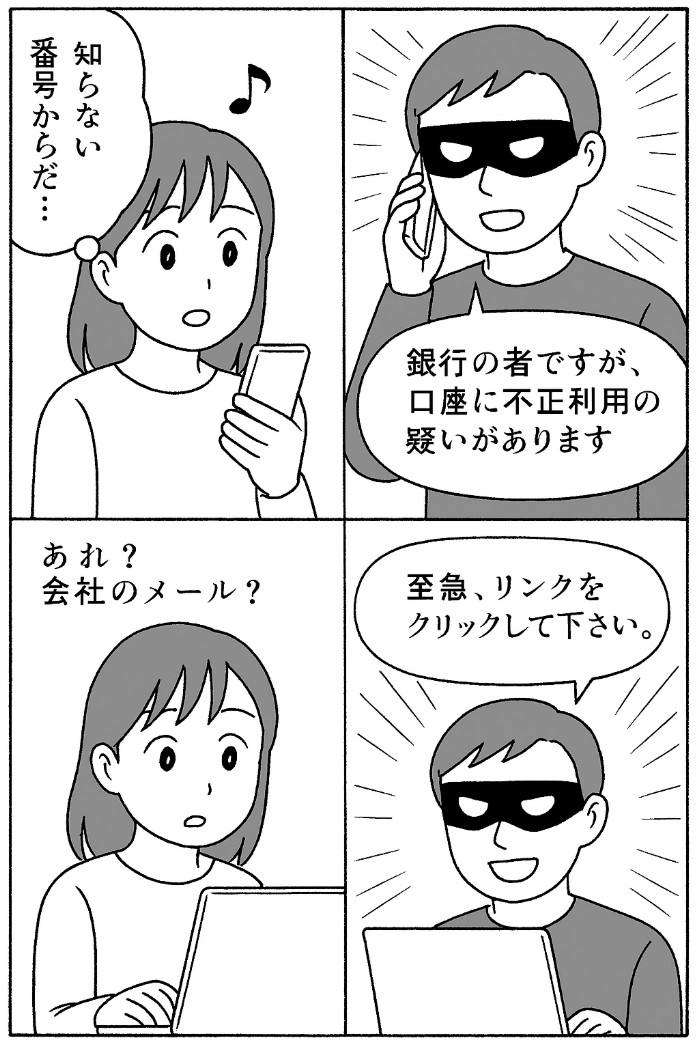 企業名を騙ったメールや電話での詐欺により、顧客や取引先の信用を失うリスクがあります。