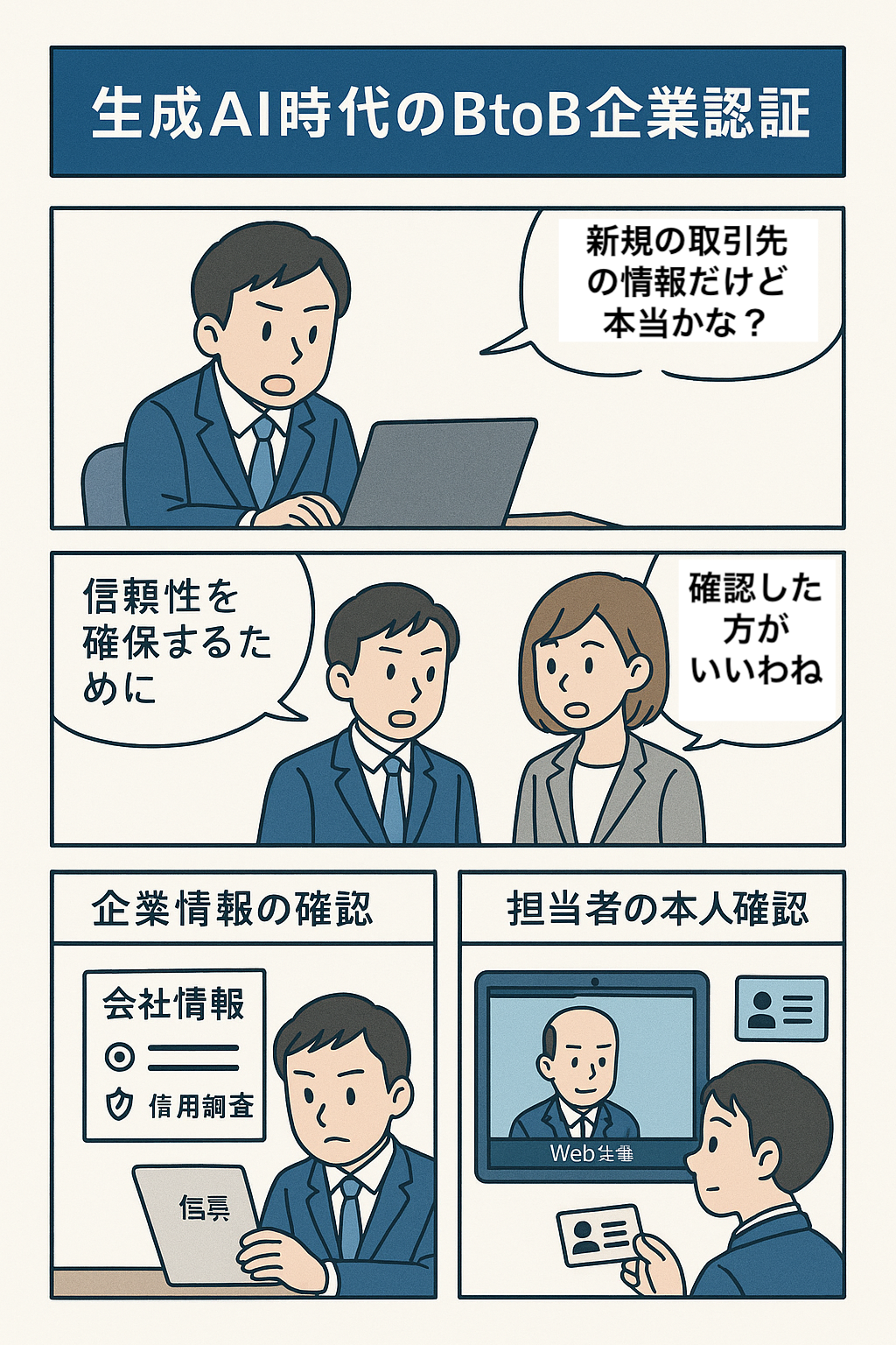 2025年現在、生成AIの進化により、偽の企業情報や担当者のなりすましが容易になり、BtoB取引における信頼性の確保がこれまで以上に重要となっています。